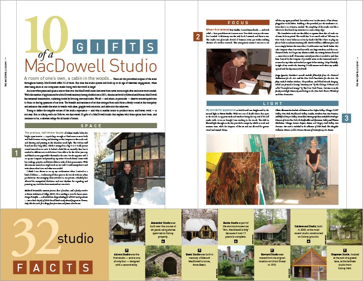 We produced a semi-annual newsletter for the world-renowned MacDowell Colony that showcased the artwork produced by the Colony's fellows in a four-color, tabloid-sized format.