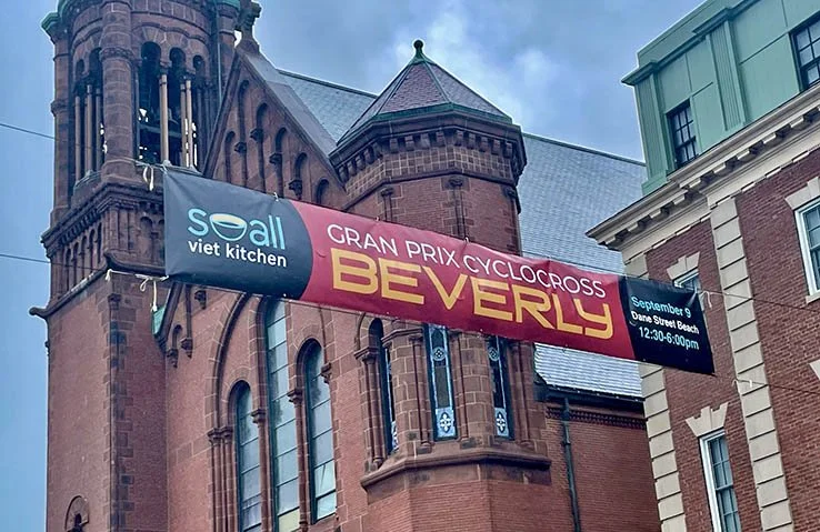 We design banners and posters for events and promotional purposes. Our design for the downtown Beverly, Massachusetts banner program was selected as the winning entry in a competition sposored by Beverly Main Streets. The banners hung throughout the downtown area during the Spring and Summer of 2013. And recently we designed a 20' overhead street banner for another Beverly event, the 2023 Gran Prix Cyclocross race.